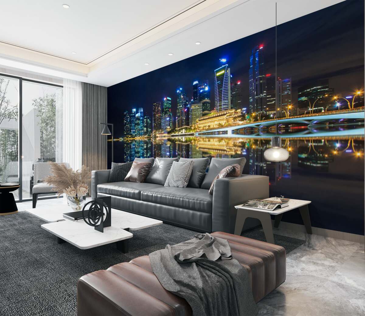 Fotobehang Nachtstad in de weerspiegeling van het water in het licht (artikel a95236 ) uit categorie Populair fotobehang